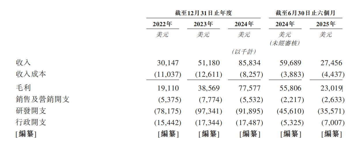 研发开支方面,由2022年0.782亿美元增加至2023年0.973亿美元,小幅减少至2024年0.919亿美元。2025年上半年较去年同期也呈减少态势。