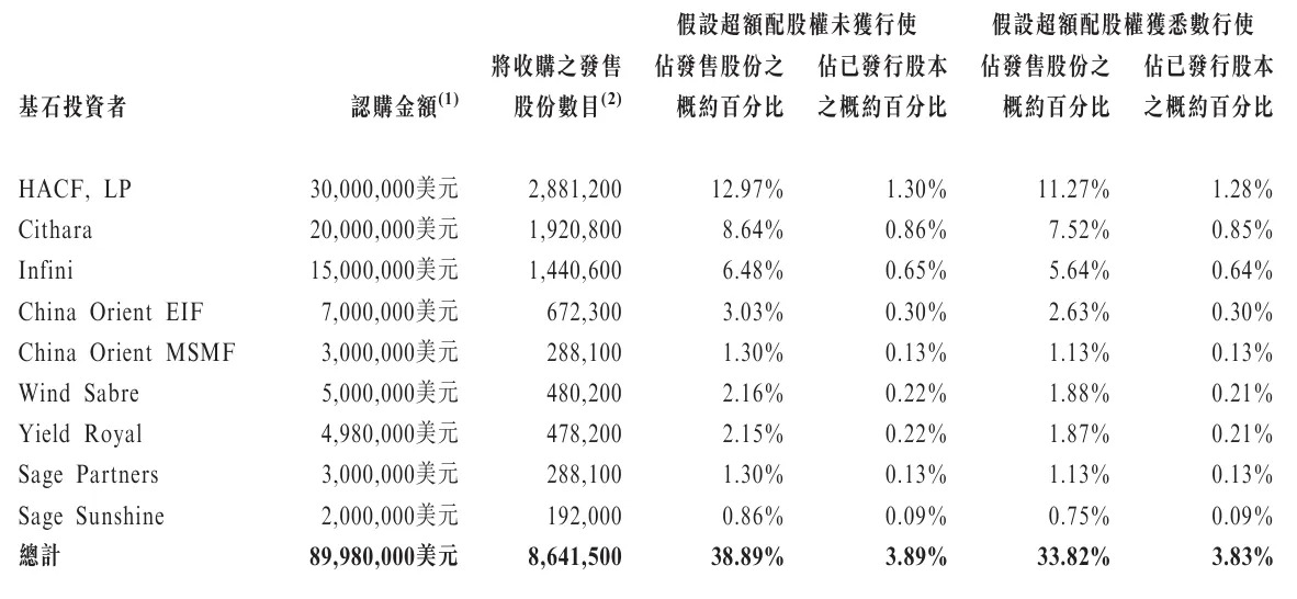 其中,HACF认购3000万美元,Cithara认购2000万美元,Infini认购1500万美元,China Orient EIF认购700万美元,China Orient MSMF认购300万美元,Wind Sabre认购500万美元,Yield Royal认购498万美元,Sage Partners认购300万美元,Sage Sunshine认购200万美元。