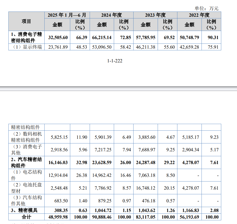 富士智能主要从事消费电子精密结构组件、汽车精密结构组件的研发、生产及销售。主要产品为消费电子精密结构组件、汽车精密结构组件和精密模具,消费电子精密结构组件主要包括显示终端结构组件(主要应用于智能电视、教育/办公显示、电竞显示、车载显示等),数码相机结构组件及录音笔/词典笔、教育平板等其他精密结构组件;汽车精密结构组件主要包括电芯结构件、电池托盘型材、车载摄像头结构件、IGBT散热基板等,精密结构组件兼具结构保护、外观装饰、产品支撑和安全防护等功能。
