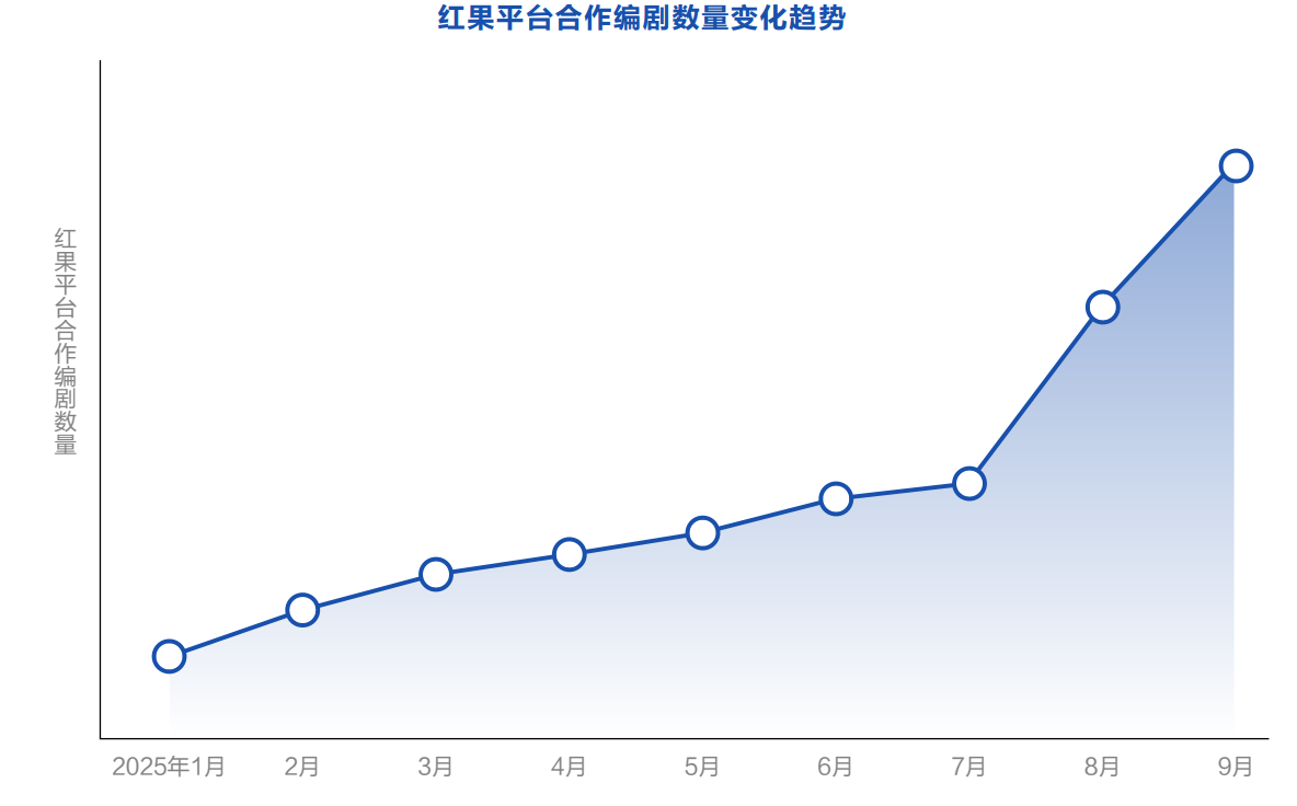 此外,编剧与内容创作者也是短剧扩张中增长最快的就业群体之一。红果短剧创作服务平台数据显示,2025年1-9月合作编剧数量呈现指数级增长,不到一年的时间里,该平台编剧合作数量增长近9倍,体现出短剧产业在内容供给端的强烈需求。