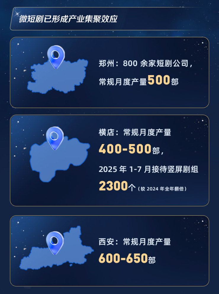 《报告》还指出,微短剧生产对超大城市核心资源的依赖程度相对较低,更容易在具备基础拍摄条件、用工成本较低的非一线城市形成产业集聚,如郑州、西安、横店就是微短剧产业集聚的代表。郑州大学政治与公共管理学院副院长陈宁表示:“郑州微短剧产业的发展是政策引导加成本驱动模式的代表,本地有闲置厂房可利用。带动直接从业人员4万多,其中30岁以下占70%,60%有大专及以上学历。”