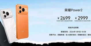 荣耀 Power2 手机正式发布,搭载 10080mAh 超大容量青海湖电池,支持 80W 快充和 27W 反向充电,机身厚度仅 7.98mm。首发天玑 8500 Elite 芯片,安兔兔跑分超 240 万。还具备 IP68/69/69K 满级防尘防水、抗摔抗弯结构设计。售价 2699 元起。