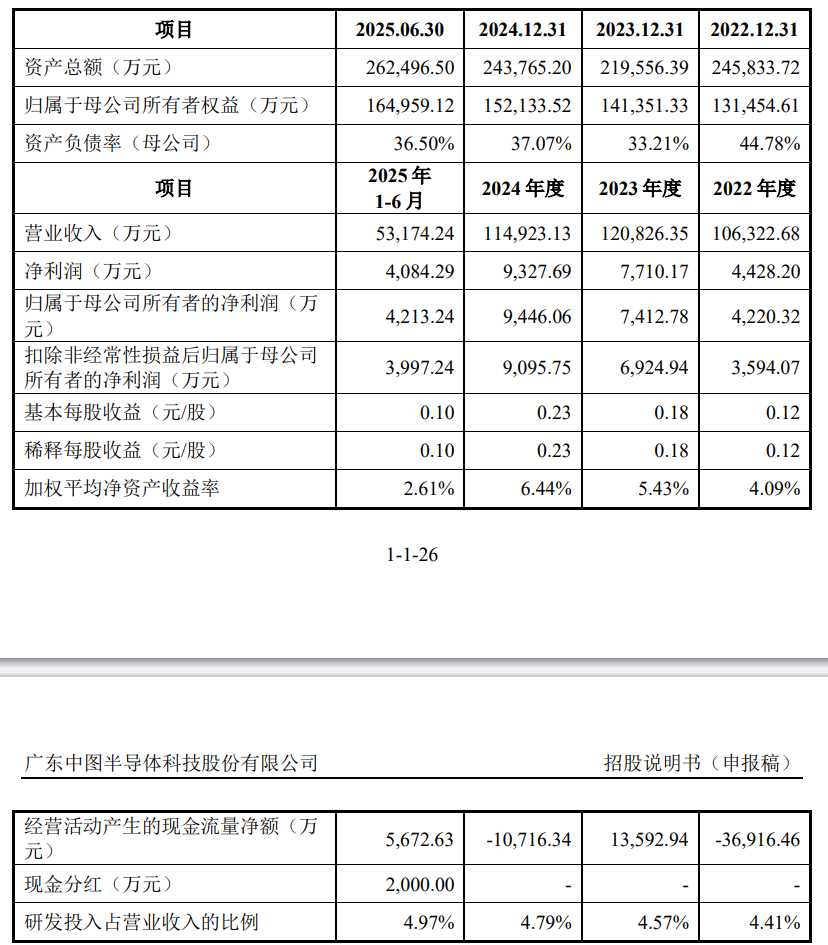 报告期内(2022年至2025年上半年),中图科技的营业收入分别为10.63亿元、12.08亿元、11.49亿元、5.32亿元;净利润分别为4428.2万元、7710.17万元、9327.69万元、4084.29万元。