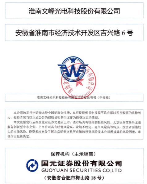 DoNews1月7日消息,据瑞财经报道,据北交所官网,淮南文峰光电科技股份有限公司(以下简称 " 文峰光电 ")北交所 IPO 获受理,保荐机构为国元证券。