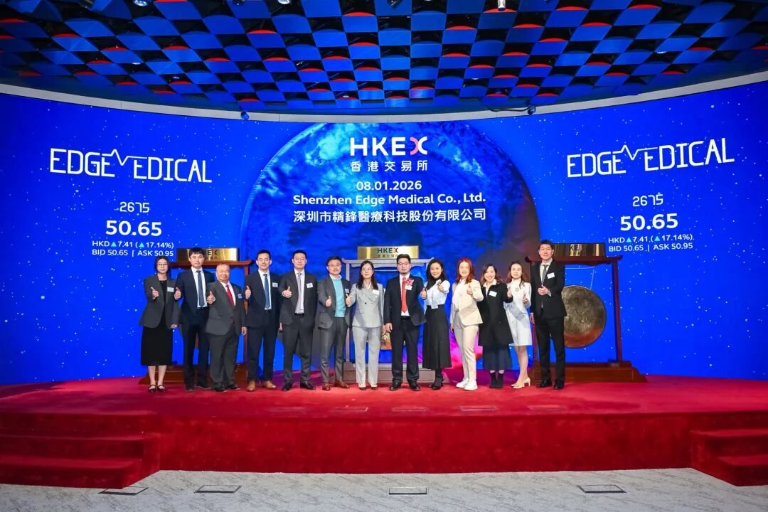 DoNews1月8日消息,1月8日,深圳市精锋医疗科技股份有限公司(股票代码:02675.HK,下称“精锋医疗”)正式在港交所主板挂牌上市,此次上市,精锋医疗以43.24港元/股的发行价全球发售2772.22万股,募资总额约12亿港元,发行后市值约168亿港元。截至发稿,市值约219亿港元(约人民币196亿元)。