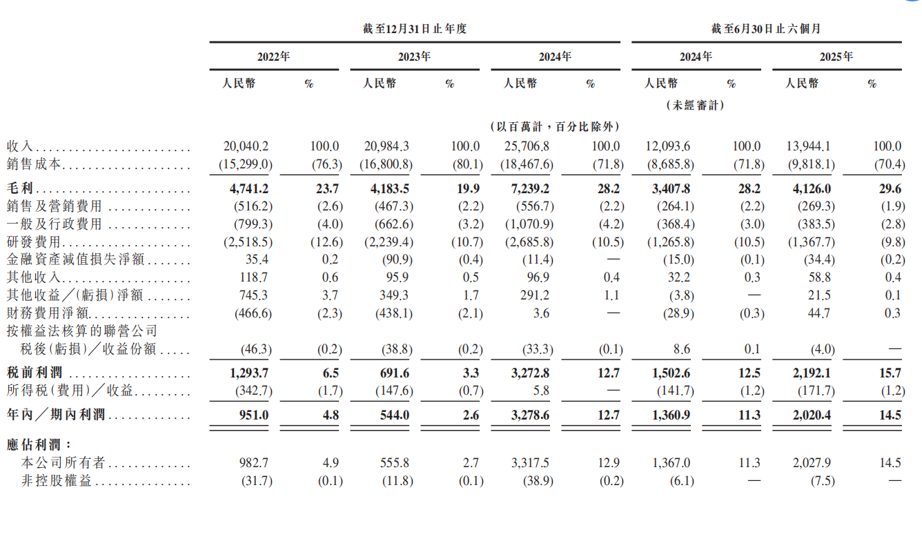 业绩方面,2023年、2024年、2025年前6个月,豪威集团营收分别为209.84亿元、257.07亿元和139.44亿元。相应的净利润分别为5.44亿元、32.79亿元和20.20亿元。