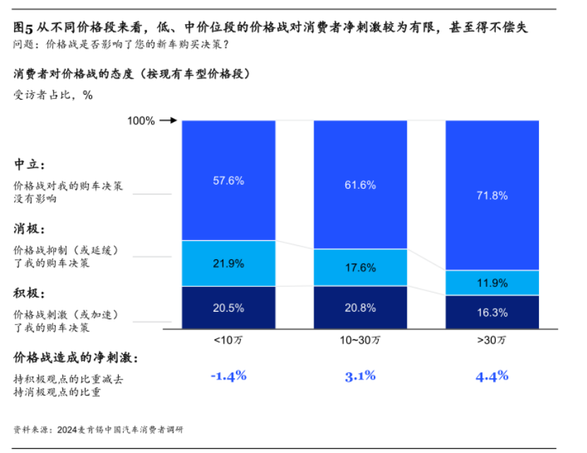 2025年国内车市的深层变革,源于“以价换量”策略的失灵。《2024麦肯锡中国汽车消费者洞察》显示,超80%的消费者表示价格战对购车决策无积极作用,低、中价位段价格竞争更是得不偿失。