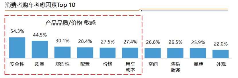 《2025质价比进化论中国汽车消费洞察报告》进一步印证,消费者购车逻辑已从“追低价”升级为“求质价比”,安全性(54.3%)与质量(44.5%)是核心考量因素。