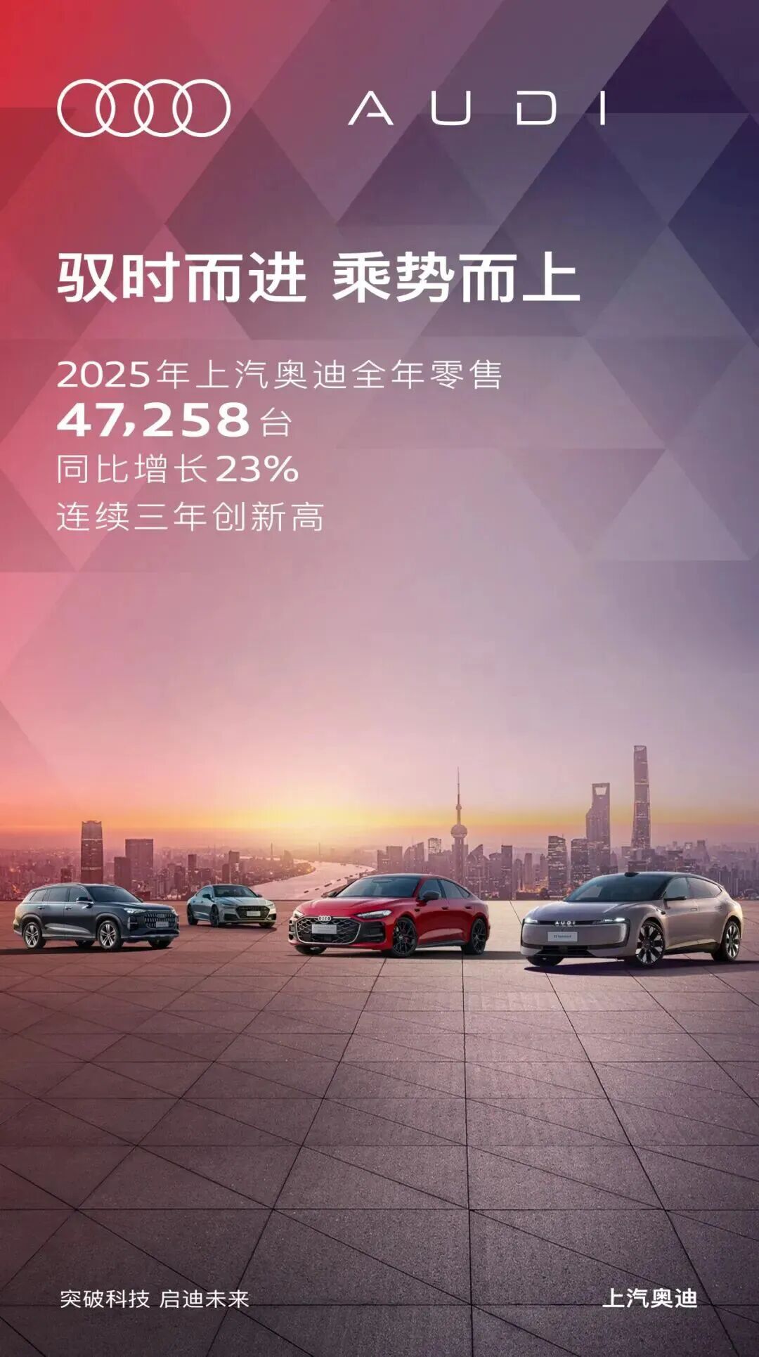 在“油电同进”层面,面对行业燃油车投入放缓的现状,上汽大众以“大厂品质+机械素质+智能表现”的黄金价值三角深耕赛道。技术端,第五代EA888发动机赋能更强动力与能效,成熟的EA211平台为增程产品筑牢根基,破解用户痛点;产品端,全新上汽奥迪A5L Sportback、凌渡L等轿跑车型,精准切入年轻化、运动化细分市场,激活燃油车市场活力。