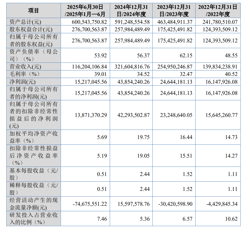 报告期内(2022年至2025年上半年),云眼视界的营业收入分别为1.4亿元、2.55亿元、3.22亿元、1.16亿元;净利润分别为1614.79万元、2464.42万元、4385.42万元、1521.7万元。