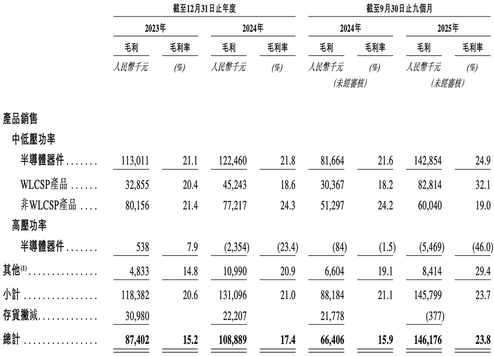 2023年到2025年前9个月,中低压功率半导体器件贡献了该公司超9成的收入。