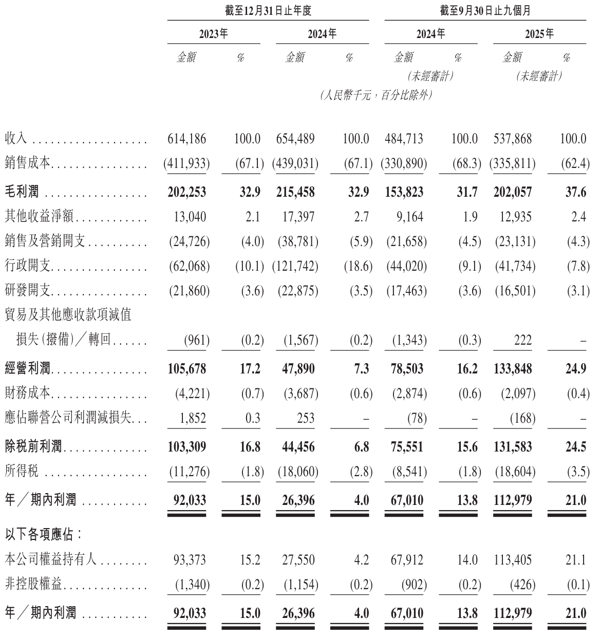 生生医药冷链2025年前9个月营收为5.38亿,较上年同期的4.85亿元增长10.9%;毛利为2亿元,上年同期的毛利为1.54亿元;生生医药冷链2025年前9个月经营利润为1.34亿元,上年同期的经营利润为7850万元;期内利润为1.13亿,上年同期的期内利润为6701万元。