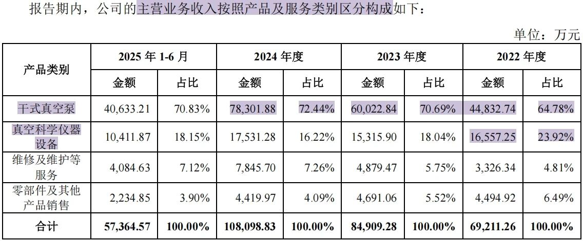 公司主要产品为干式真空泵,应用于集成电路晶圆制造及光伏电池等泛半导体产品制造,此外,公司还生产应用于国家重大科技基础设施和科研领域的真空科学仪器设备。