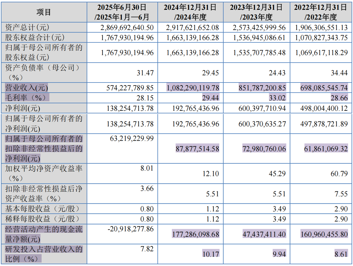 业绩方面,报告期(2022-2024年及2025年1-6月)内,公司实现营业收入分别为6.98亿、8.52亿、10.82亿和5.74亿元,扣非后归母净利润0.62亿、0.73亿、0.88亿和0.63亿元,营业收入复合增长率25%,扣非后归母净利润复合增长率19%。公司预计2025年营业收入增长15-18%,扣非后归母净利润增长14-23%。公司业绩增长趋势较好。