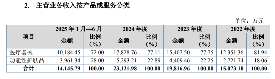 从产品类别来看,报告期内,公司主营业务收入主要来源于医疗器械产品。报告期内,公司医疗器械产品收入分别为12,351.36万元、15,407.50万元、17,828.76万元和10,184.45万元,保持稳定增长趋势。