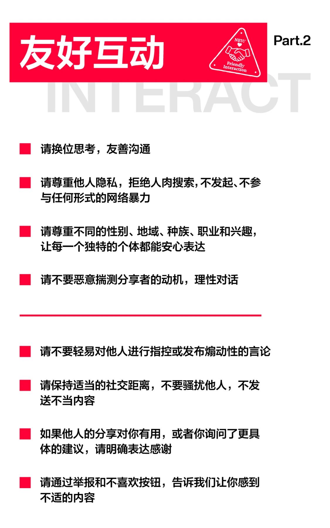 DoNews1月19日消息,今天,小红书「社区公约2.0」——正式上线:真诚分享,友好互动。这次,小红书明确呼吁:一起“反对制造对立”:尊重不同,理性对话,不煽动不对立;坚决“抵制虚假内容”:不虚构身份,不刻意夸张,守护真实底色;共同“践行有序经营”:亮明身份,诚信经营,拒绝恶意竞争。