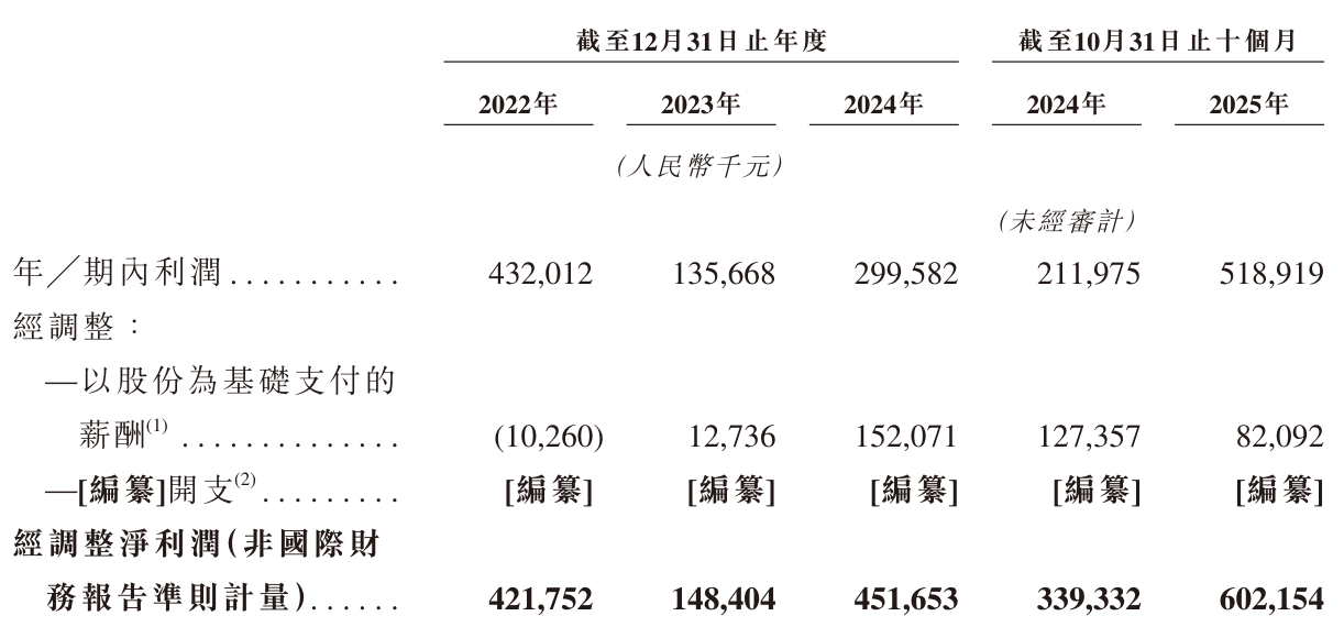 大族数控2022年、2023年、2024年经调整净利分别为4.22亿、1.48亿、4.52亿元;2025年前10个月经调整净利为6亿元。