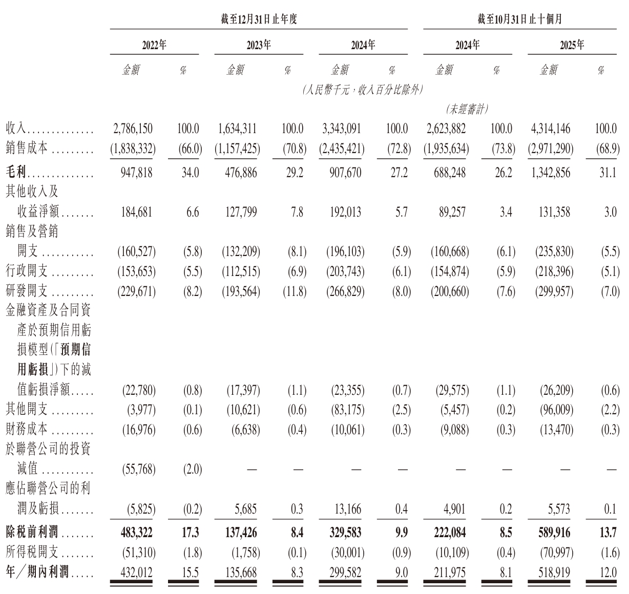 大族数控2025年前10个月营收为43.14亿,较上年同期的26.23亿元增长64.4%;毛利为13.43亿元;期内利润为5.19亿元。