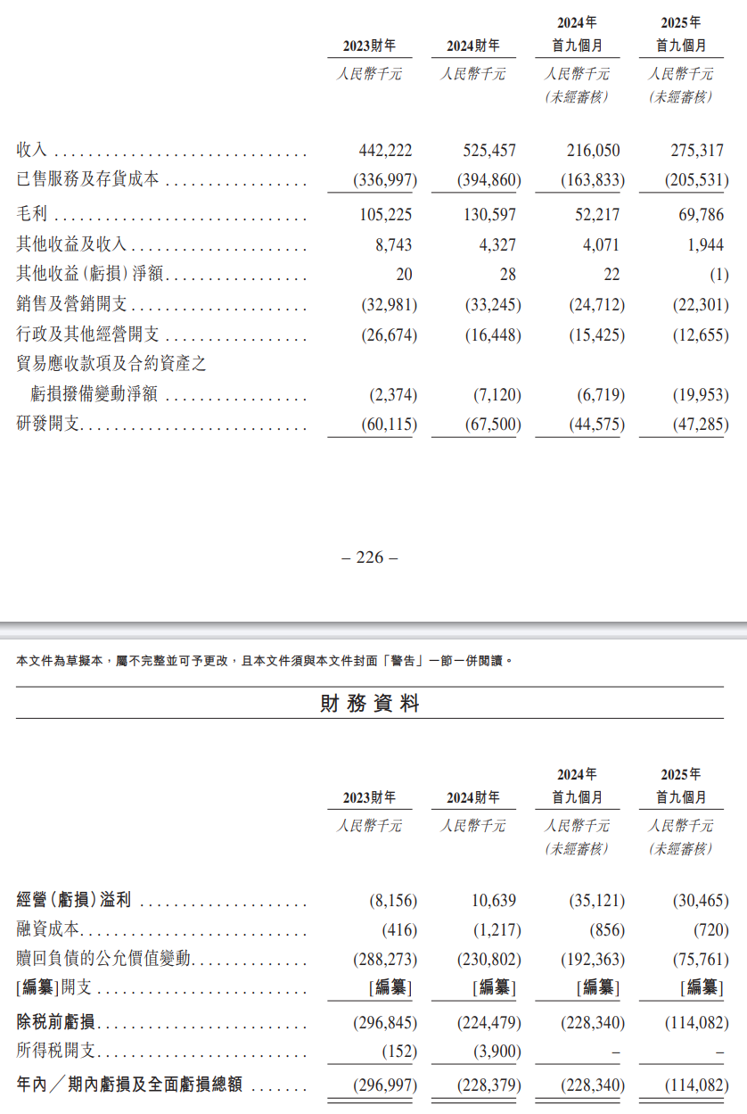 报告期内(2023年至2025年三季度),德风科技的收入分别为4.42亿元、5.25亿元、2.75亿元;期內亏损及全面亏损总额分别为2.97亿元、2.28亿元、1.14亿元。