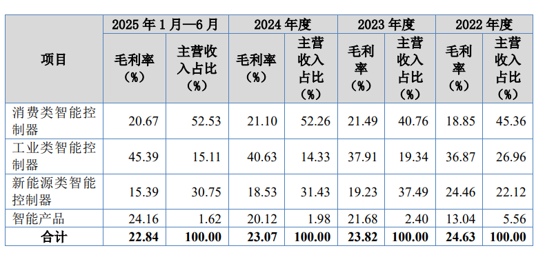 报告期内,消费类智能控制器产品的毛利率分别为18.85%、21.49%、21.10%及20.67%,总体保持稳定,其中电子雾化器产品毛利率波动较大。