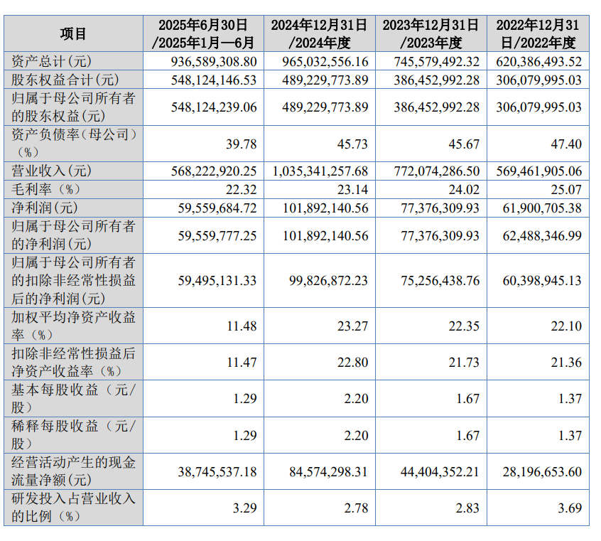 报告期内(2022年至2025年上半年),拓普泰克的营业收入分别为5.69亿元、7.72亿元、10.35亿元、5.68亿元;净利润分别为6190.07万元、7737.63万元、1.02亿元、5955.97万元。