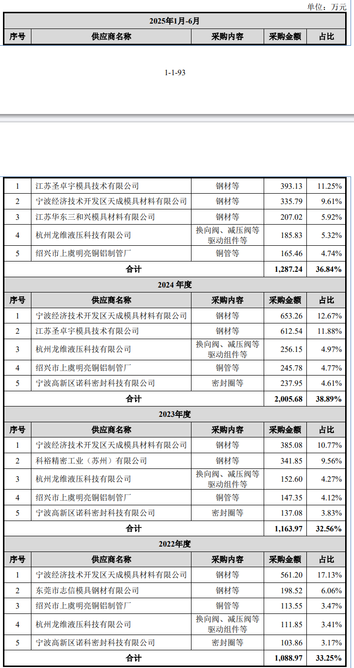 报告期内,公司的前五名材料供应商较为稳定,不存在向单个供应商的采购比例超过50%或严重依赖少数供应商的情形。截至本招股说明书签署日,公司董事、高级管理人员、主要关联方或持有本公司5%以上股份的股东在上述前五名供应商中未占有权益。
