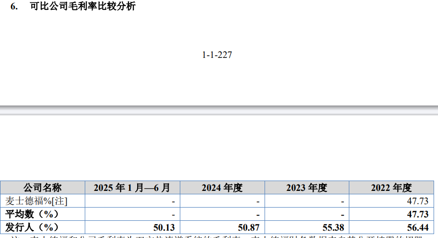 2020-2022年,同行业可比公司麦士德福热流道系统毛利率分别为47.90%、50.36%和47.73%,总体保持较高水平。公司热流道系统毛利率水平高于麦士德福,主要系产品结构差异:(1)汽车内外饰及其他热流道系统产品:麦士德福热流道系统的下游应用领域较为广泛,主要集中在汽车内外饰、家电、IT电子等,公司汽车内外饰及其他热流道系统产品应用领域主要集中在汽车内外饰;公司汽车内外饰及其他热流道系统产品毛利率水平总体与麦士德福不存在较大差异。