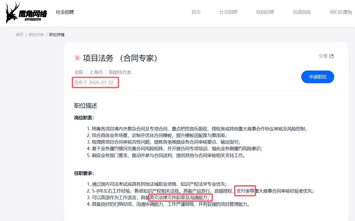 此外,有网友发现鹰角已经开始招聘海外支付产品运营和项目法务等相关职位。