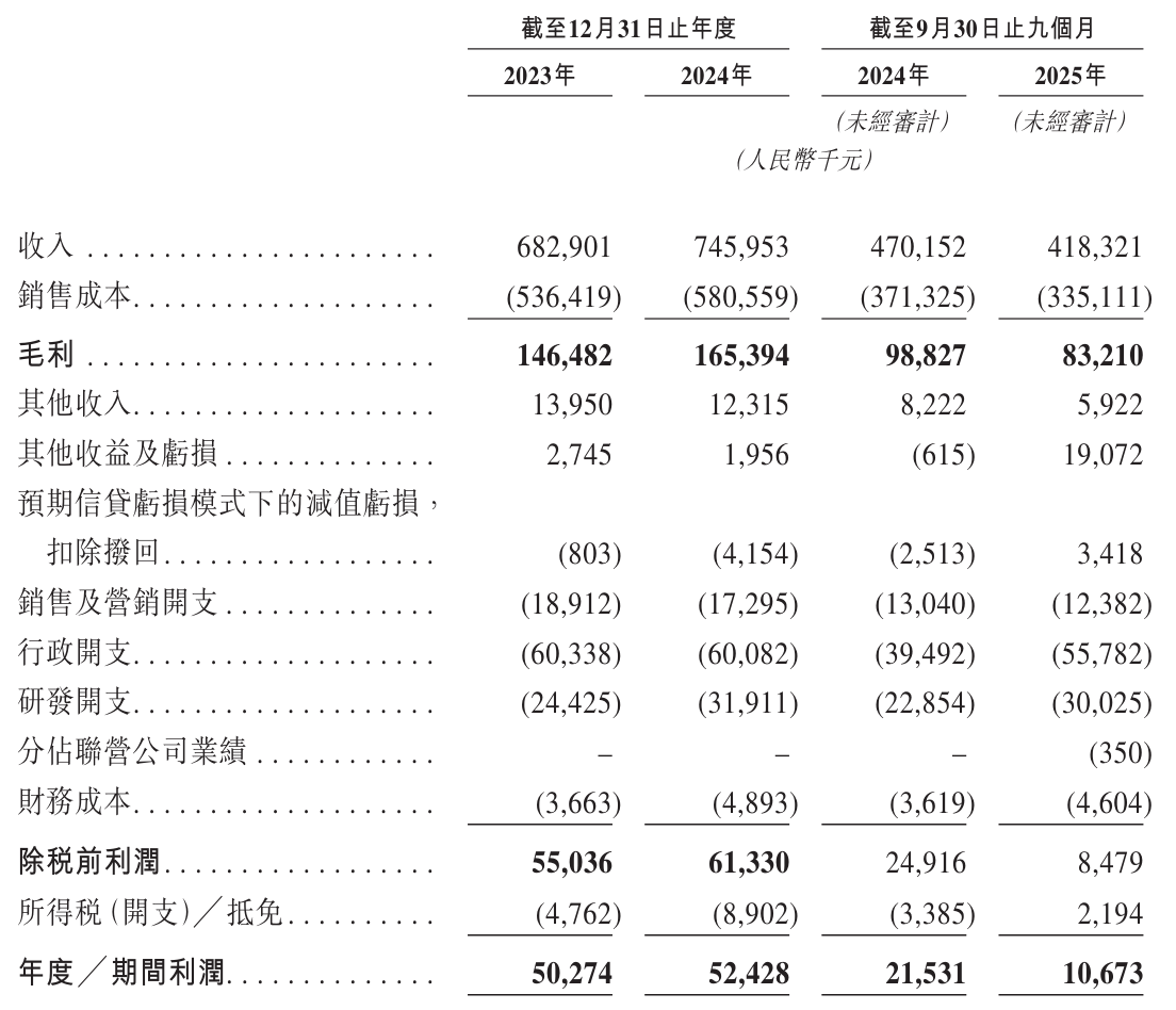 精智实业从而成为客户在智能化升级道路上不可或缺、具备长期AI能力的战略伙伴。招股书显示,精智实业2023年、2024年营收分别为6.83亿、7.46亿元;毛利分别为1.46亿、1.65亿元;期内利润分别为5027万、5243万元。