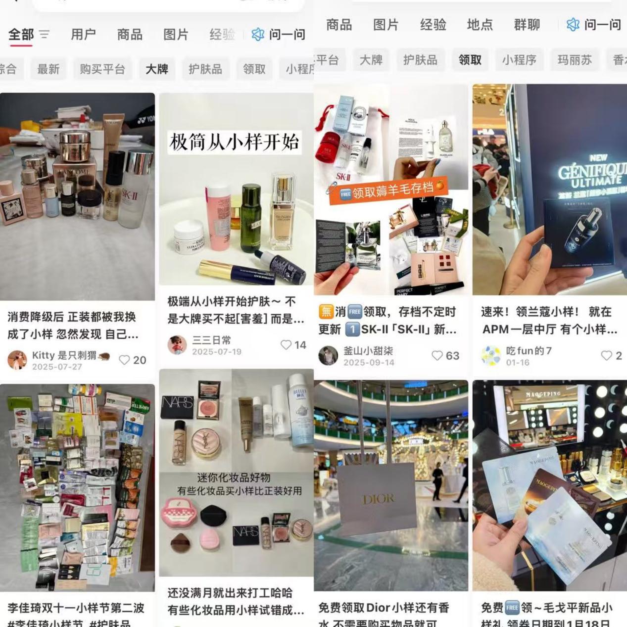 这种“主动尝鲜”行为又与社交媒体的“种草”文化深度绑定。当“先试后买”成为共识,小样便从品牌单方面的馈赠,转变为消费者主动寻求的“决策刚需”,进而推动品牌重新定位小样的战略价值。