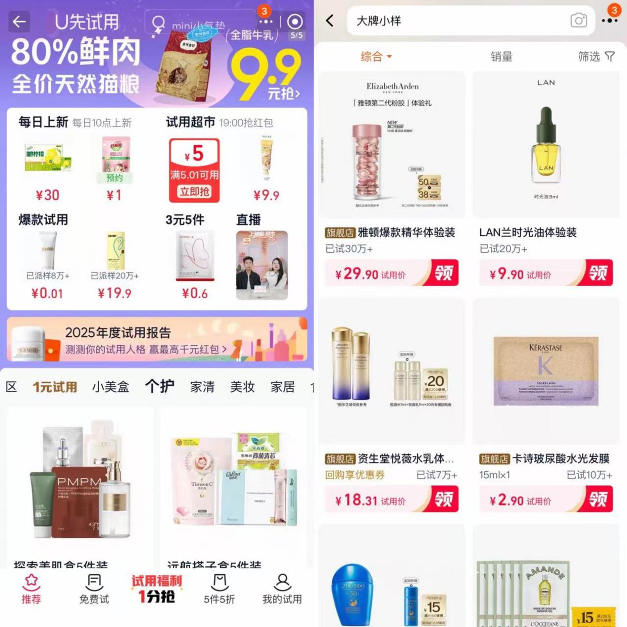 线上,“天猫U先”“京东试用”等官方平台建立起品牌与消费者之间的标准化通路,使小样作为独立商品实现高效流转;抖音、小红书等内容平台则通过达人种草、直播试用等方式,进一步放大其传播效应。