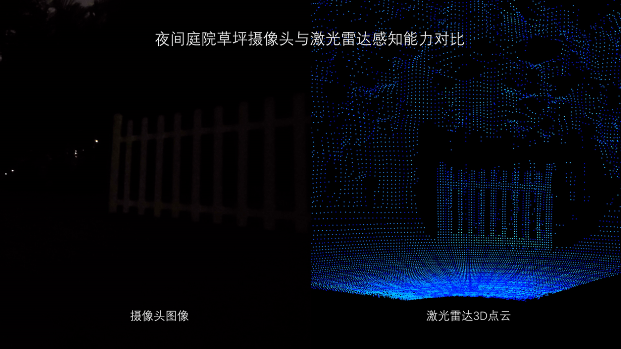 - 精准感知与建图:凭借超密集 3D 点云输出能力,在同一FOV内分辨率高达传统激光雷达的4倍。建图导航高效精准,实时还原庭院环境。
