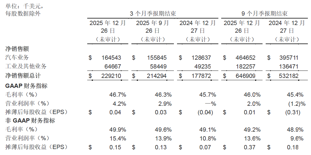 DoNews2月4日消息,对于 2026 财年第四季度(截至 2026 年 3 月 27 日),公司预计总净销售额在 2.3 亿美元至 2.4 亿美元之间。以中值计算,预计净销售额同比增长 22%。
