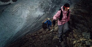 高山徒步与攀登需要在碎石坡、岩脊、冰川瀑布及冰裂缝周边区域持续行进,途中既有长时间的动态爬升,也不可避免地经历结组等待或路线判断中的静态停留。天气变化频繁、行进节奏不固定,使外层装备不仅需要抵御风雨,更需在整个行进过程中保持防护输出的稳定性。