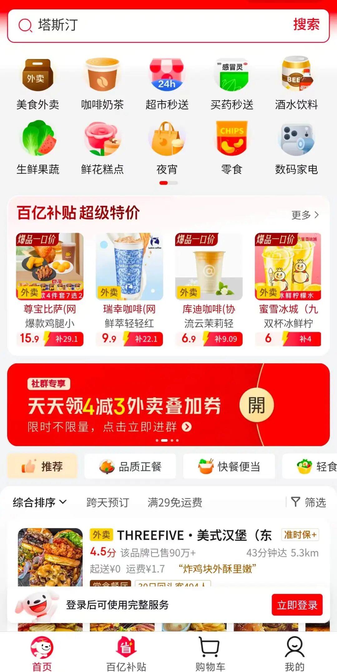 京东外卖小程序内还推出多重优惠福利,部分爆品推出一口价活动,如库迪咖啡流云茉莉轻饮6.9元、蜜雪冰城双杯冰鲜柠檬水6元、瑞幸咖啡鲜萃轻轻红9.9元等。同时,小程序还推出外卖叠加券、优惠饭卡等福利。
