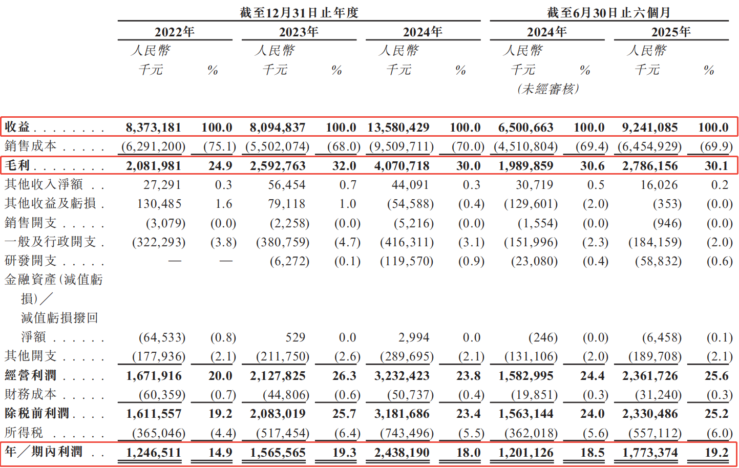 公司的纯利亦稳步上涨,从2022年至2024年,分别为12.4亿元、15.6亿元及24.4亿元,复合年增长率为39.8%,对应的净利率分别为14.9%、19.3%及18.0%。2025年上半年的纯利更是达到17.7亿元,同比增长47.6%,对应的净利率为19.2%。