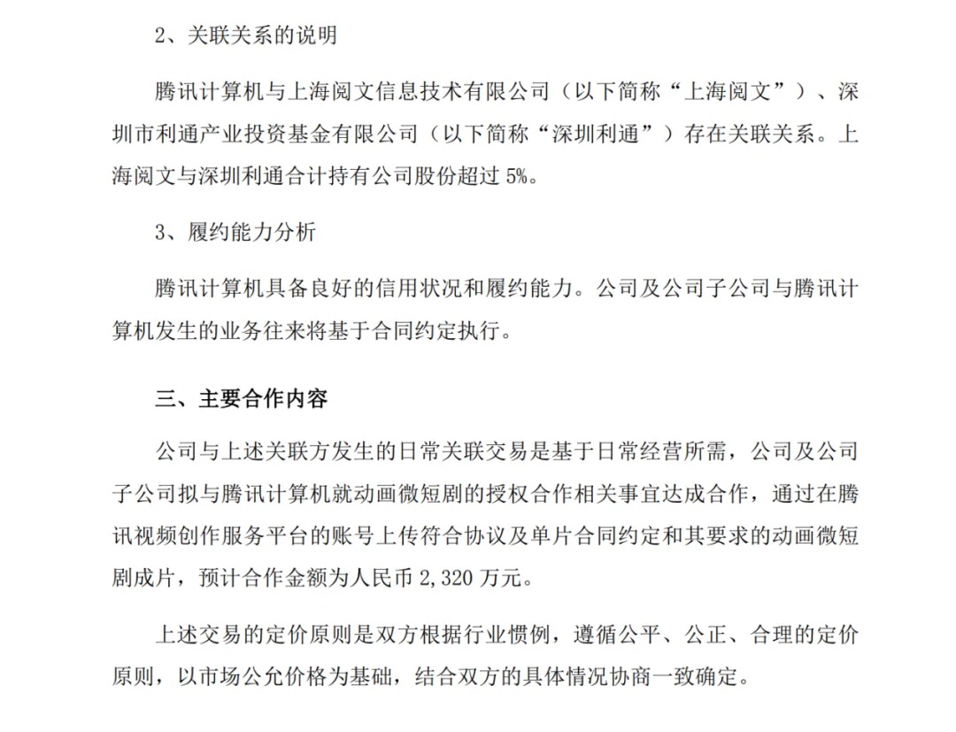 有消息称,为了保障火龙漫剧的内容供给,腾讯已与多家头部漫剧制作方签署供剧协议。而在“火龙漫剧”App正式发布当日(2026年2月4日)下午,中文在线发布公告,确认腾讯以2320万元向其采购大批漫剧内容。