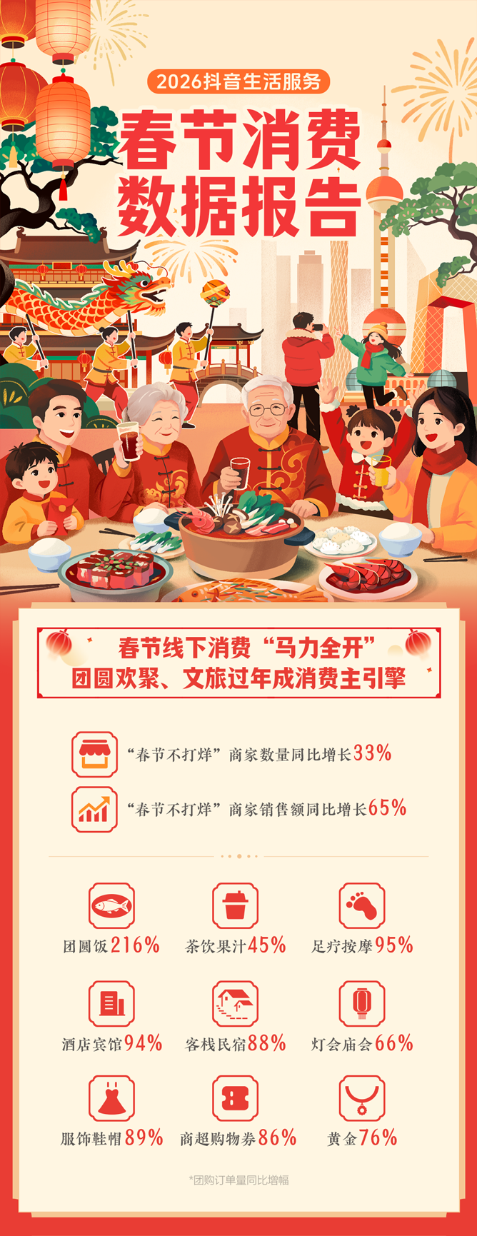 年轻人正成为新年味的主理人,假期Z世代下单的抖音团购量同比增长65%。
