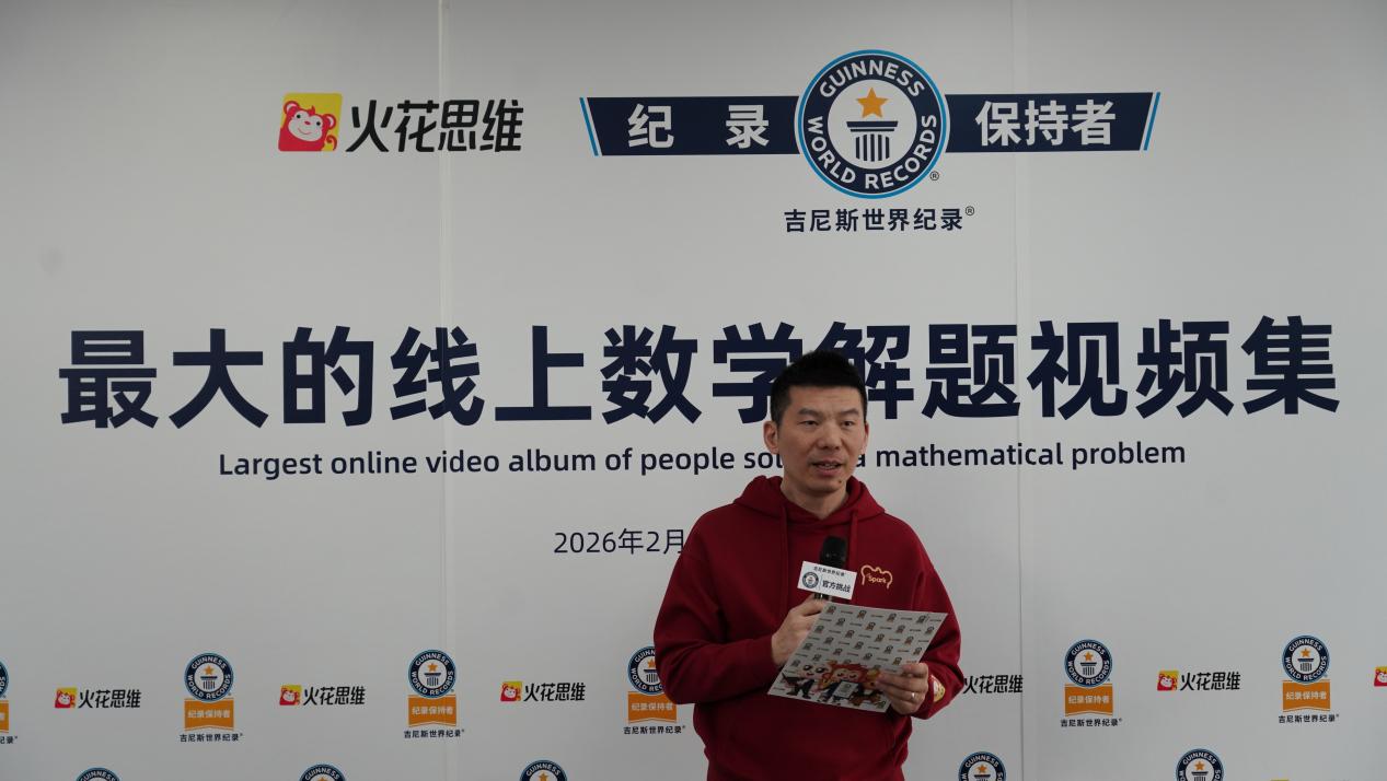 2月6日,吉尼斯世界纪录官方正式为火花思维颁发“最大的线上数学解题视频集”吉尼斯世界纪录称号保持者认证。这份来自国际权威机构的认可,是对活动合规性、数据真实性与教育创新价值的国际级认证,彰显了活动在全球范围内的公信力与影响力。这项突破不仅让火花思维成为新的纪录保持者,也让世界再次见证到“中国力量”。