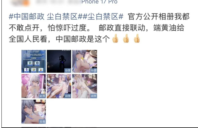 据未来网报道,中国邮政官方对此回应,相关邮局现已叫停该服务,可关注后续动态发展。手游《尘白禁区》也宣布终止与中国邮政的联名合作。