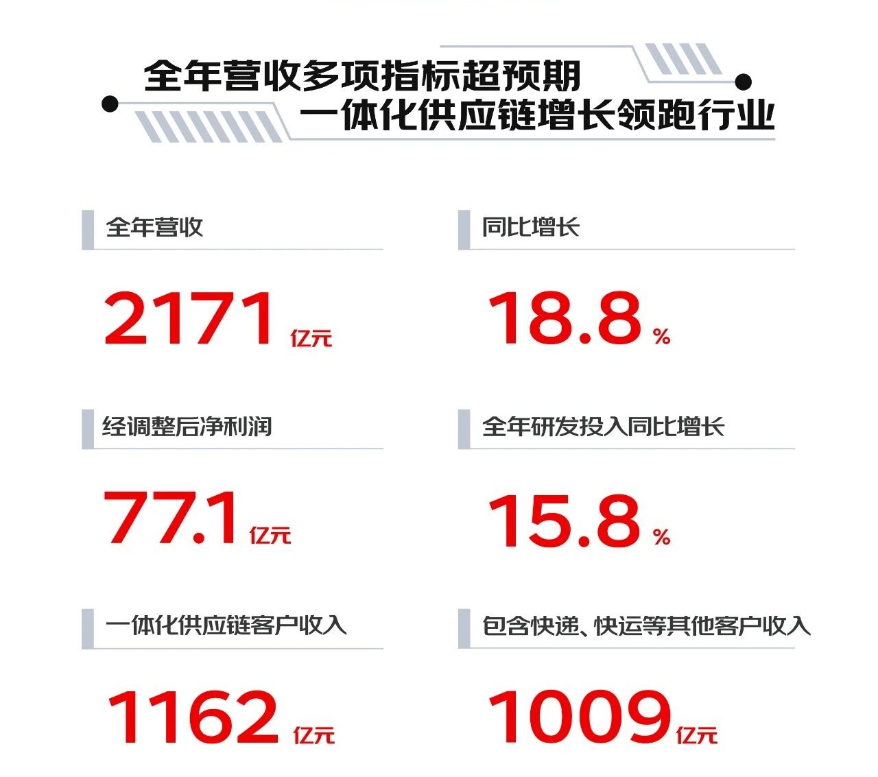 DoNews3月5日消息,京东物流今日发布 2025 年度业绩报告:2025 全年总收入达 2171 亿元,同比增长 18.8%;净利润 77.1 亿元,同比下滑 2.6%。