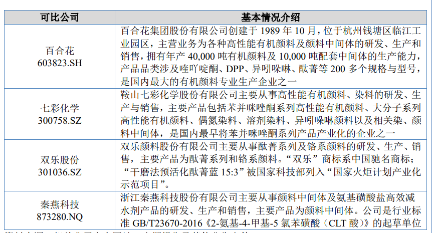 彩客科技位于河北省沧州市,是一家专门从事精细化工产品研发、生产和销售的高新技术企业,现有主要产品包括DMSS、DATA、DMAS、DMS等,下游应用包括喹吖啶酮类及DPP类高性能有机颜料、食品色素柠檬黄、光稳定剂等多种精细化学品的生产,终端应用覆盖高档涂料及喷墨油墨、汽车面漆、儿童玩具、食品饮料、药品及化妆品、塑料农膜、合成纤维、胶粘剂等多个领域。