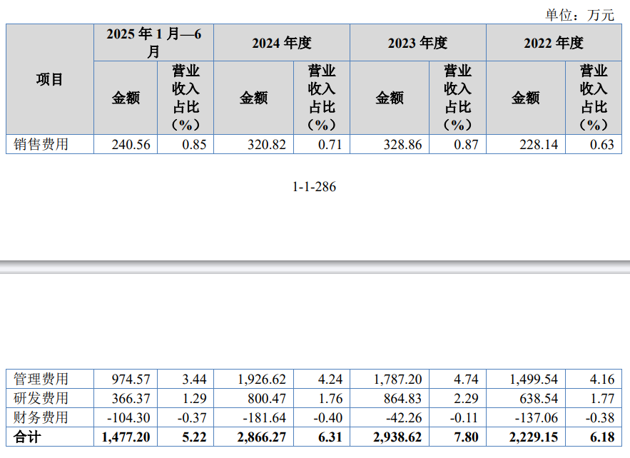 报告期各期,公司销售费用分别为228.14万元、328.86万元、320.82万元和240.56万元,占营业收入的比重为0.63%、0.87%、0.71%和0.85%。