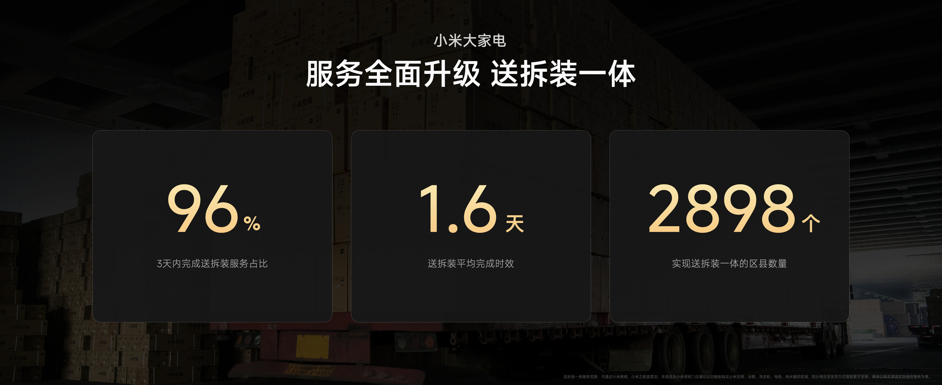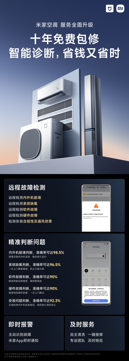 去年9月,小米在空调行业就率先推出了全品类10年免费包修,整机免费、配件免费、服务免费,覆盖米家空调全品类,挂机、柜机、中央空调等均可享受。更早之前的2024年,小米也是在行业率先推出了“送拆装一体”服务:一次上门搞定空调配送、拆旧机、装新机,广受好评。