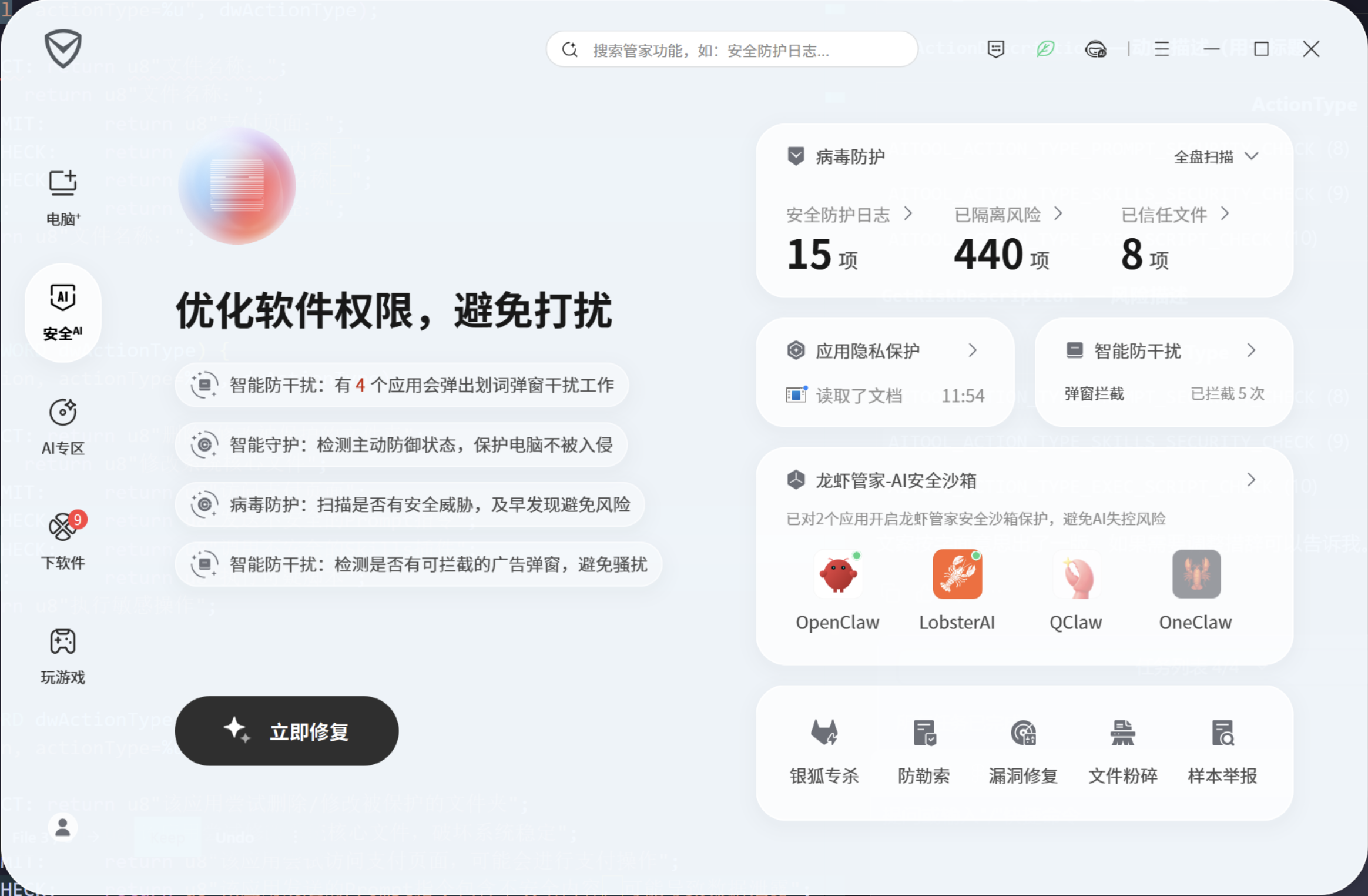 「龙虾管家」搭载的腾讯电脑管家 18.0 版本,是面向 AI 时代的重大更新。