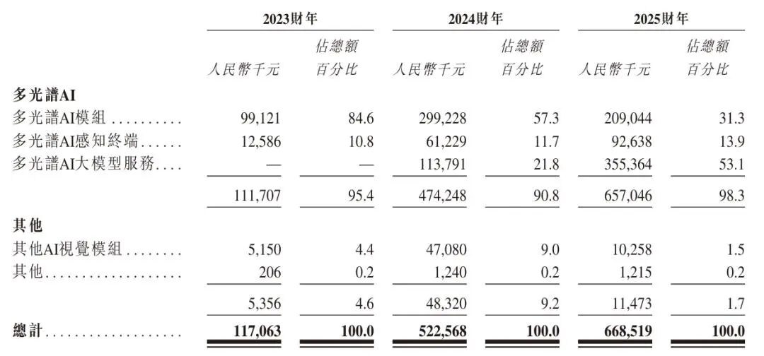 该等产品及服务包括多光谱AI模组,为通过AI算法收集及处理多光谱数据(包括可见光、红外线及紫外线)的嵌入式硬件组件,以供整合至第三方设备;多光谱AI感知终端为整合多光谱传感器、增强型多光谱AI算法及标准硬件组件的设备,旨在提供实时感知洞察;及多光谱AI大模型服务,为搭载自主研发的「智元起源大模型」的大模型平台化解决方案。