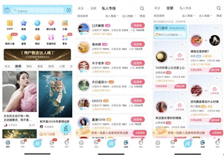 经梳理记者看到,这款APP的背后,是北大医学部毕业生任永亮于2013年创立的北京力拓飞远科技有限公司,其从简单星座测评工具起步,2016年借移动支付与知识付费风口转型在线双边平台,布局AI功能形成“免费AI+付费人工”模式,如今坐拥近6000万注册用户、2.6万名在线心理及情感达人,实现数亿营收且多年盈利,甚至计划跨界推出陪伴机器人。