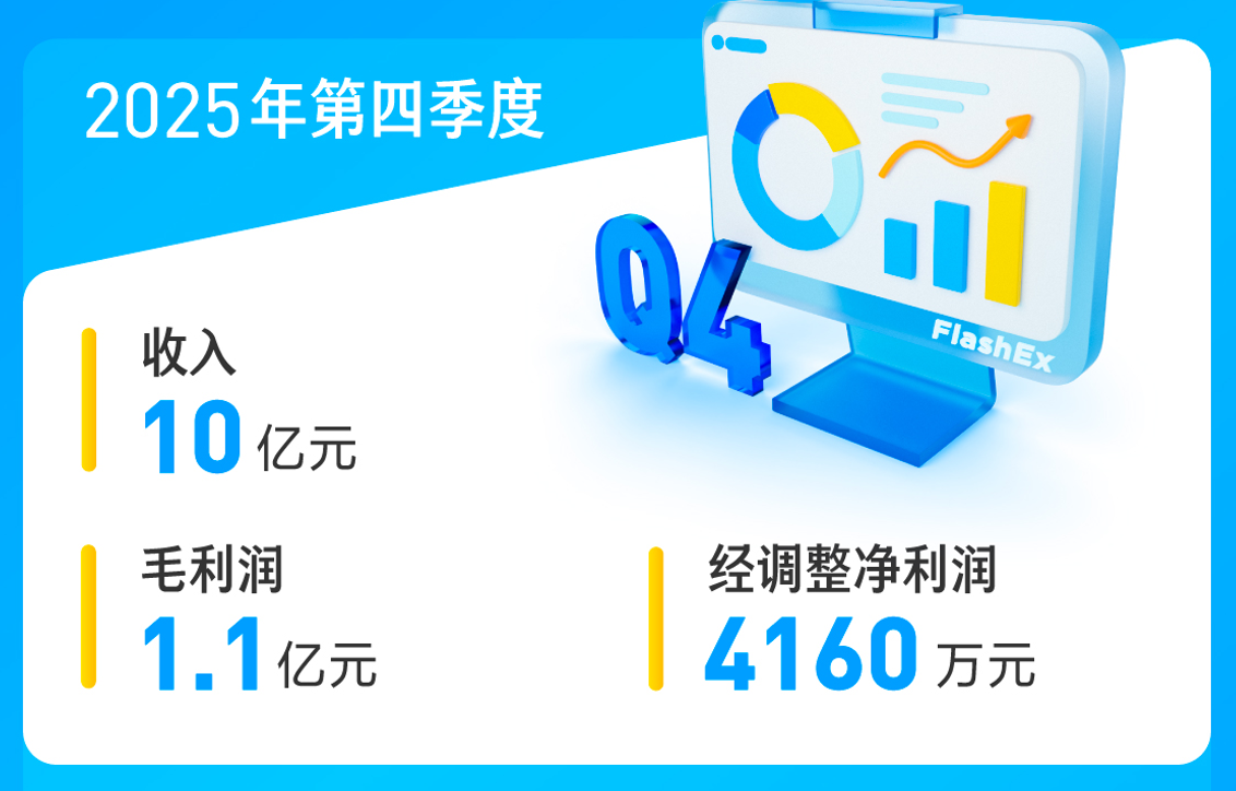 闪送2025年第四季度运营利润为290万元,经调整运营利润为1050万元。闪送2025年第四季度净利为2250万元,经调整净利为4160万元。