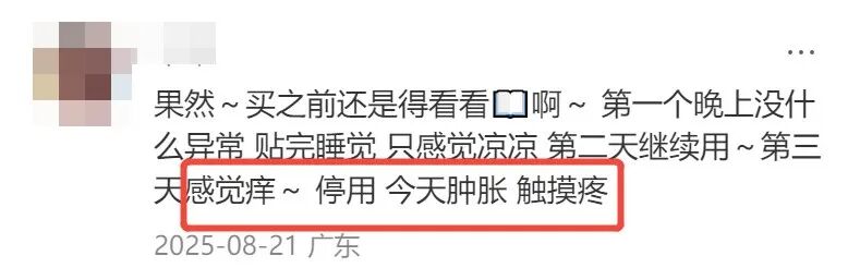 在大量使用雪莲贴的评价中,我们发现有很多使用者在用亲身经历给大家避雷:痒、痛、发炎、感染、别用!