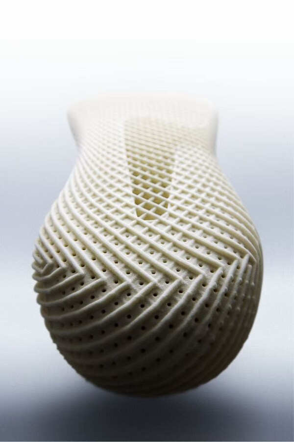 柔软的鞋身得益于通过3D打印形成的晶格结构,该晶格结构受到了空气流动路径(airflow movement patterns) 的启发 :鞋身的材料与结构会随着步伐运动而产生微小形变,在提供稳定支撑的同时,宛如第二层皮肤一般包裹住皮肤。